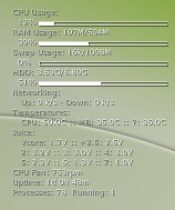 configured I2C and lm_sensors and you hardware supports it, you should be able to view temps, voltages, fan speeds, etc. In fact, some temperatures and fans may be available via ACPI as described in the .torsmorc file.